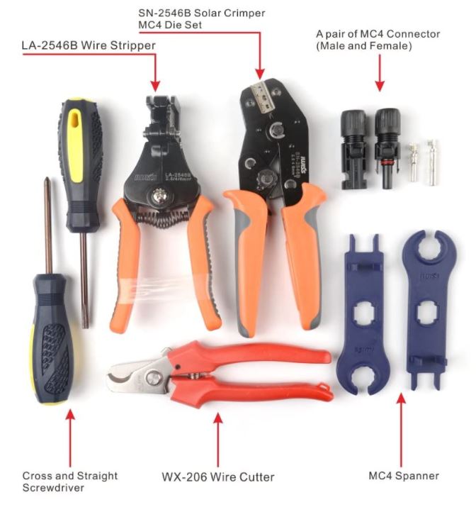 - ชุดเครื่องมือครบชุดสำหรับการติดตั้งขั้วต่อโซล่าเซลล์อย่างง่ายดายและแม่นยำ