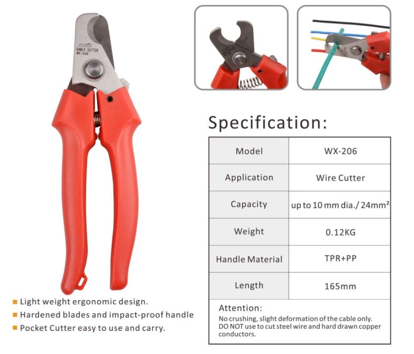 - คีมตัดลวดแบบพกพาพร้อมใบมีดคม ช่วยให้ตัดได้สะอาด ใช้งานและพกพาสะดวก