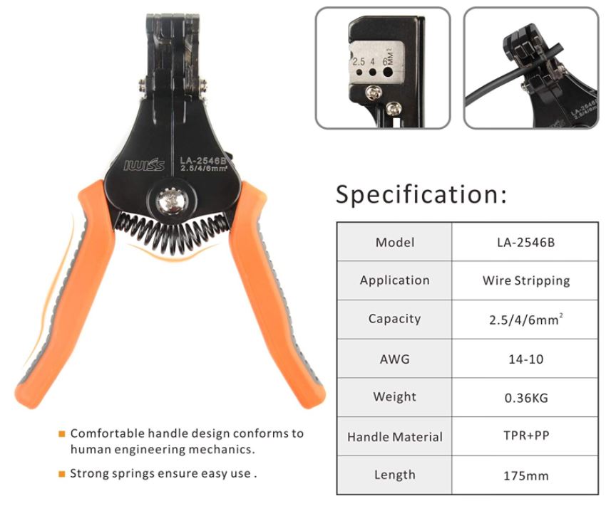 - เครื่องปอกอเนกประสงค์ได้รับการออกแบบมาเป็นพิเศษสำหรับการปอกสายเคเบิลหุ้มฉนวนที่เชื่อถือได้ โดยมีช่วงการปอก: 2.5/4/6mm ²