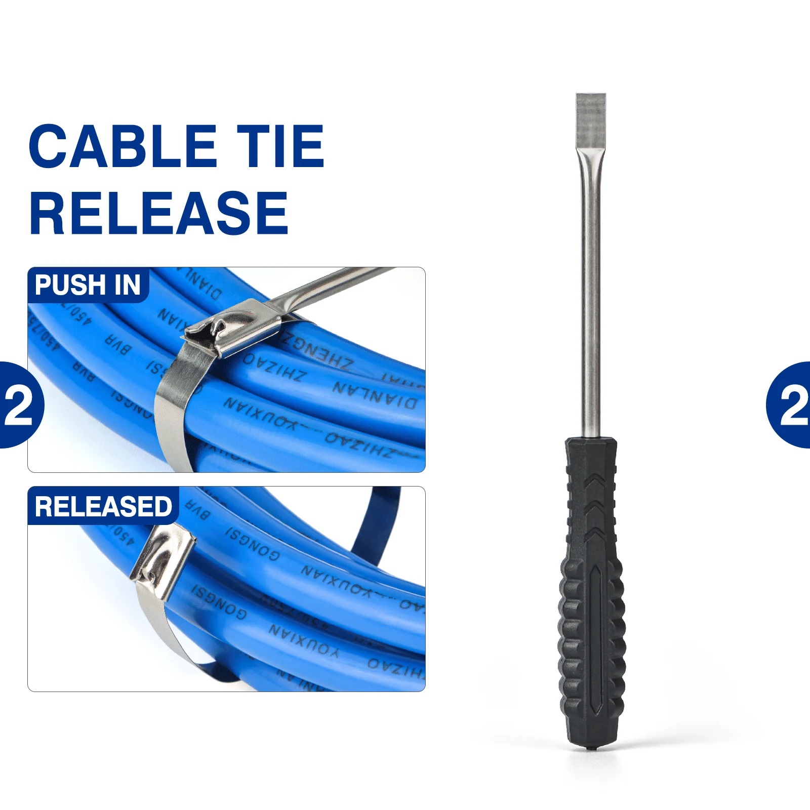 - เครื่องมือปลดสายรัดช่วยให้สามารถถอดสายรัด SS ที่รัดแน่นออกได้ภายในไม่กี่วินาที และสามารถปลดสายรัด SS ที่รัดแน่นได้กว้างถึง 12 มม.
